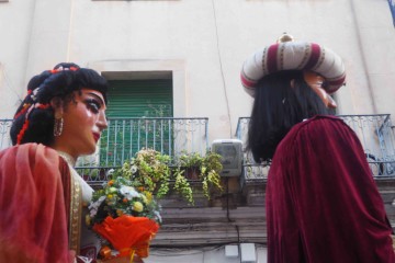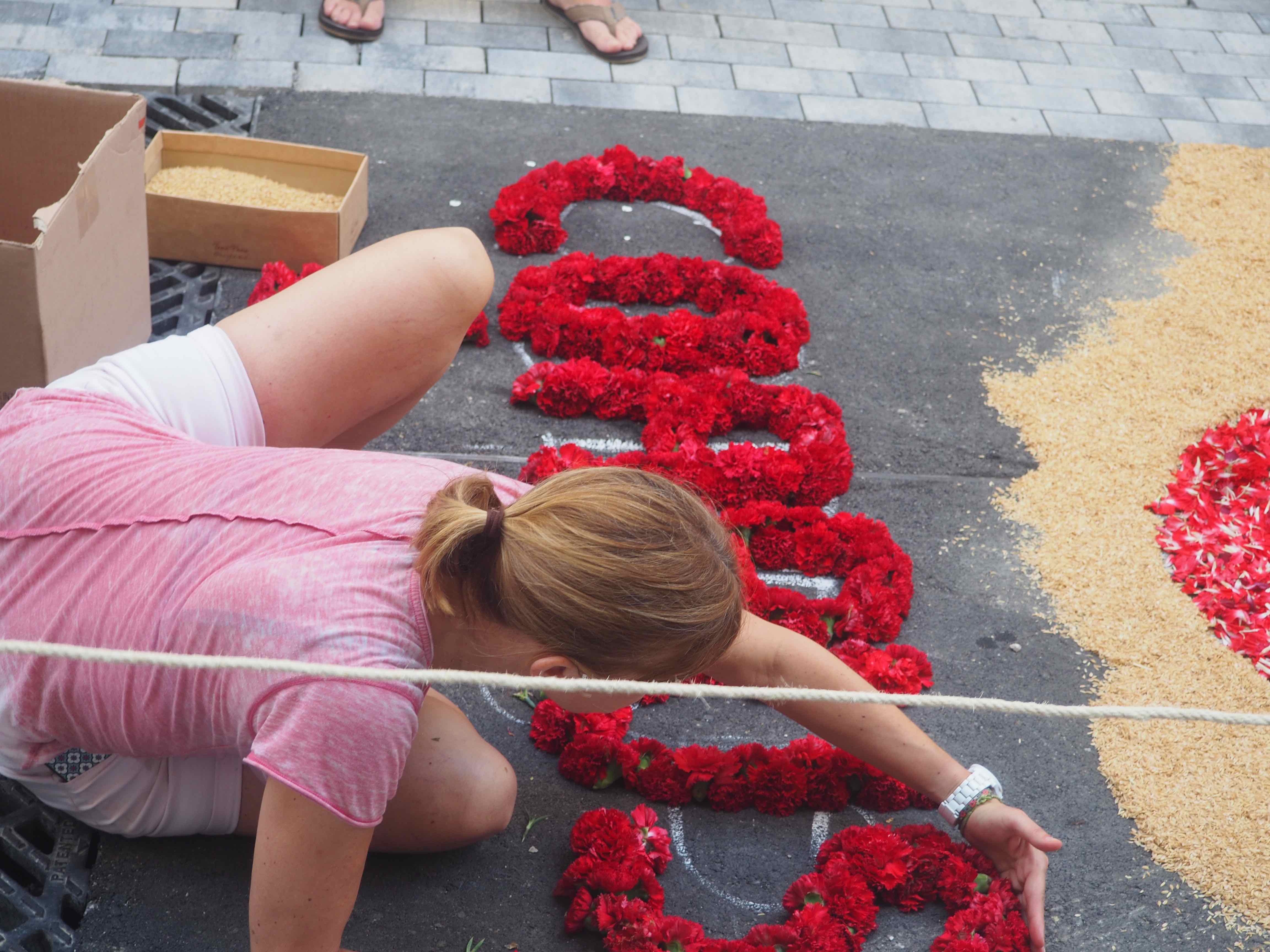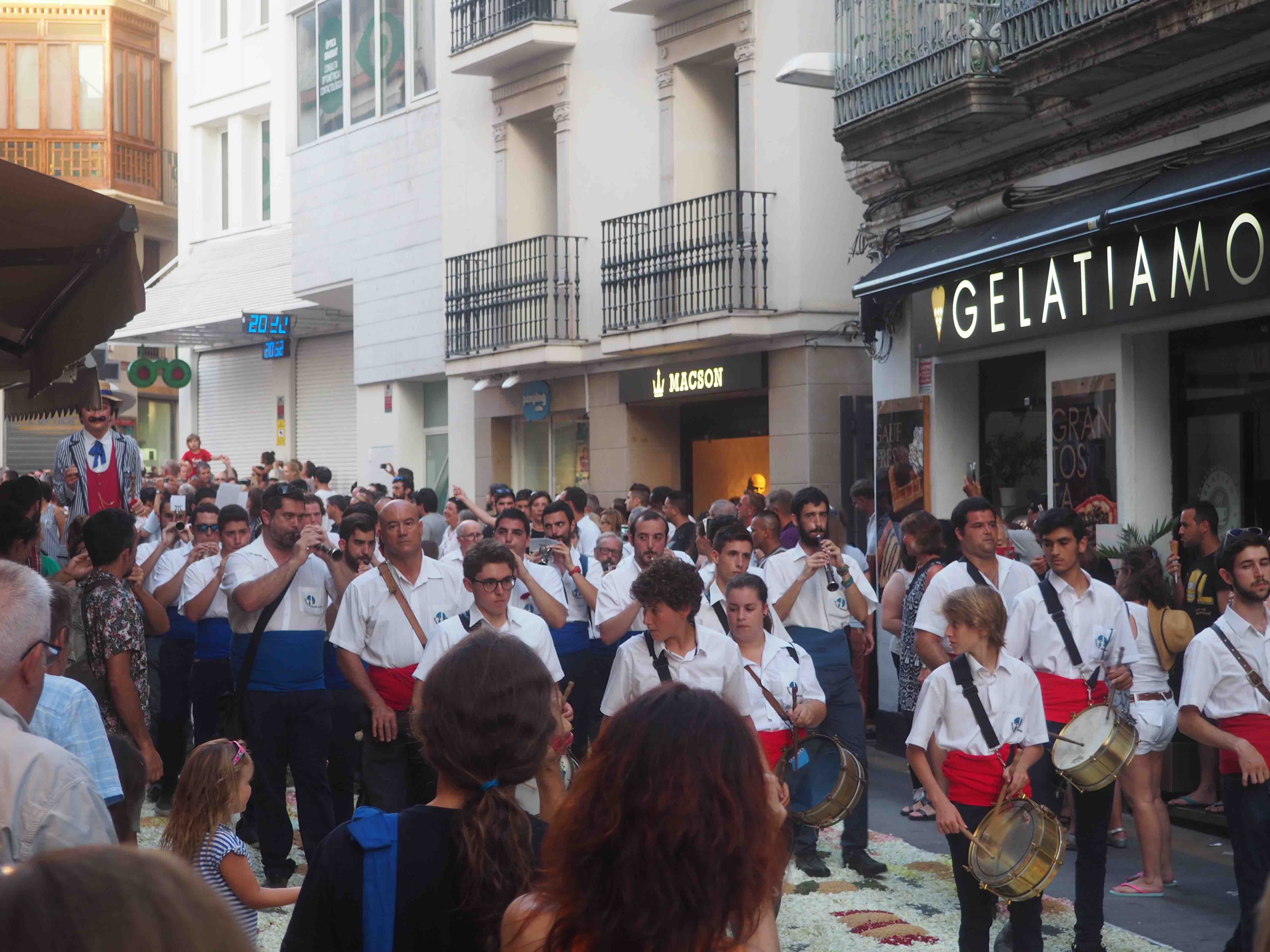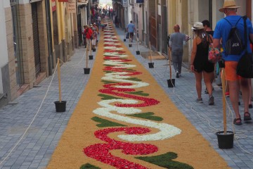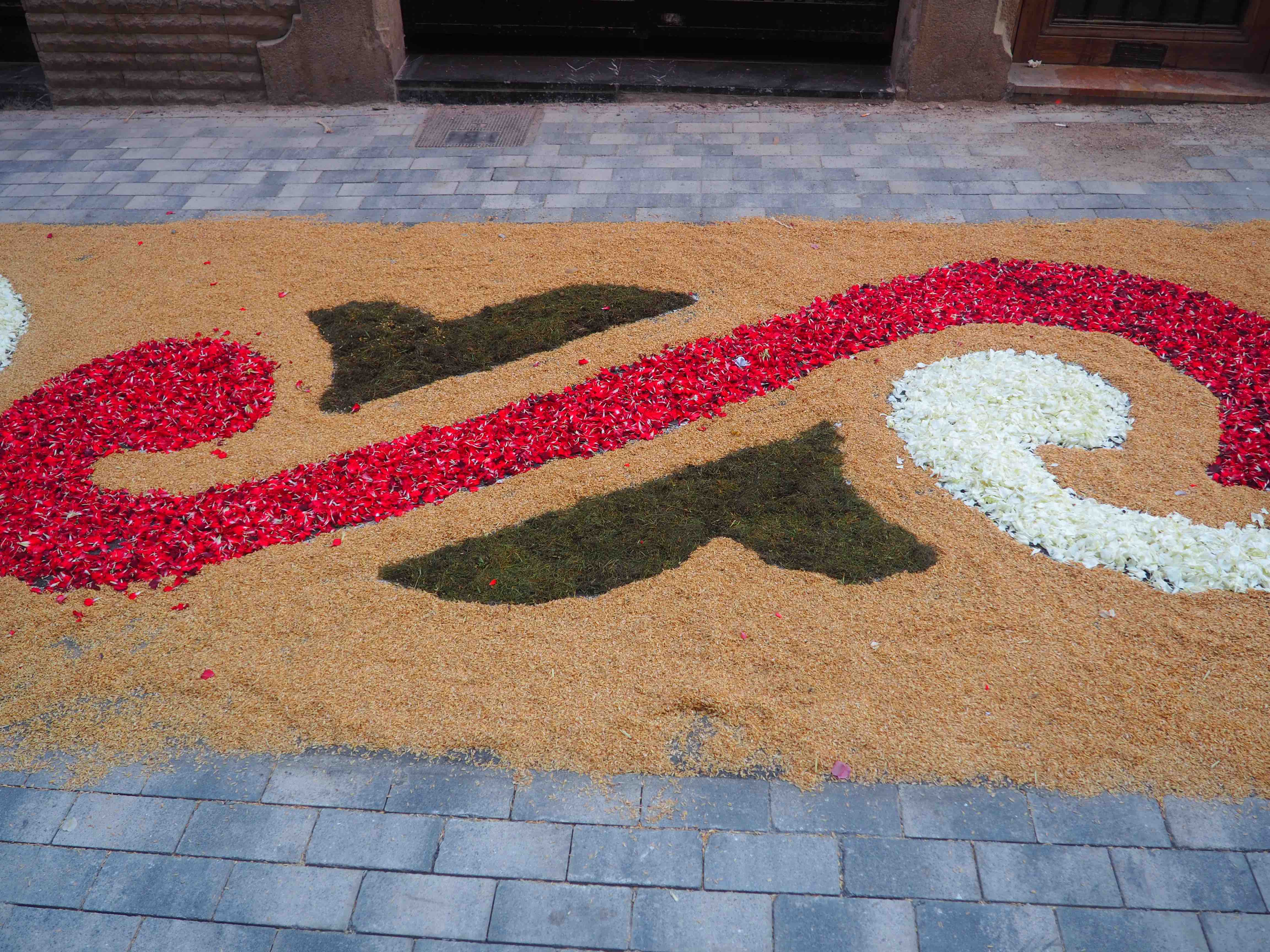 In Sitges the streets are transformed with murals made out of flowers, bringing a colorful atmosphere. Early in the morning the flowers are being installed (there is also a small competition for the best flower mural) and around 8 pm the religious ceremony starts. The ceremony includes a typical Spanish band and giant wooden structure known as “gegants” and serves as head of the blessed sacraments.