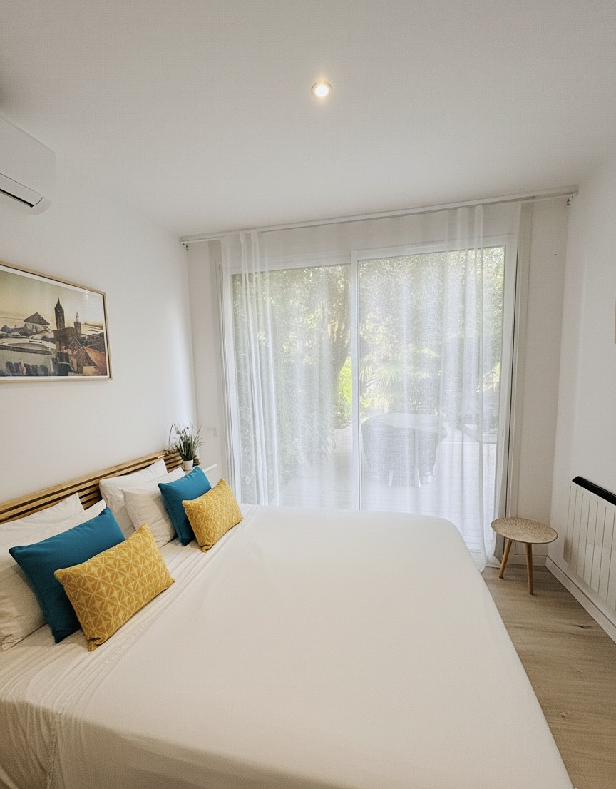 At the end of the terrace, enjoy the convenience of an outdoor shower and a table tennis setup, ensuring endless family fun. With fully air-conditioned rooms, this apartment guarantees an unforgettable stay year-round. Experience the perfect blend of luxury and leisure in this beautiful seaside retreat!